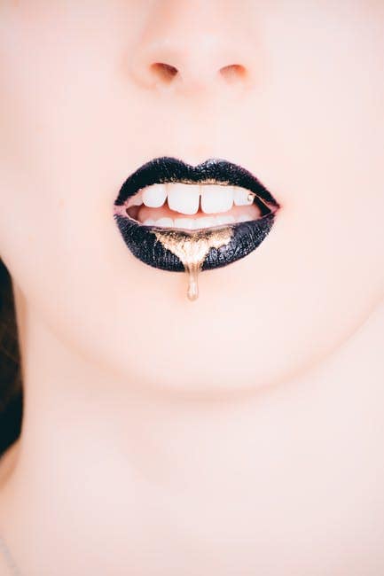 Mujer-Vistiendo-Lapiz-Labial-Negro-Con-Oro-Goteando
